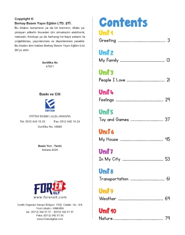 Berkay Basım Yayın Eğitim LTD. ŞTİ. Contents