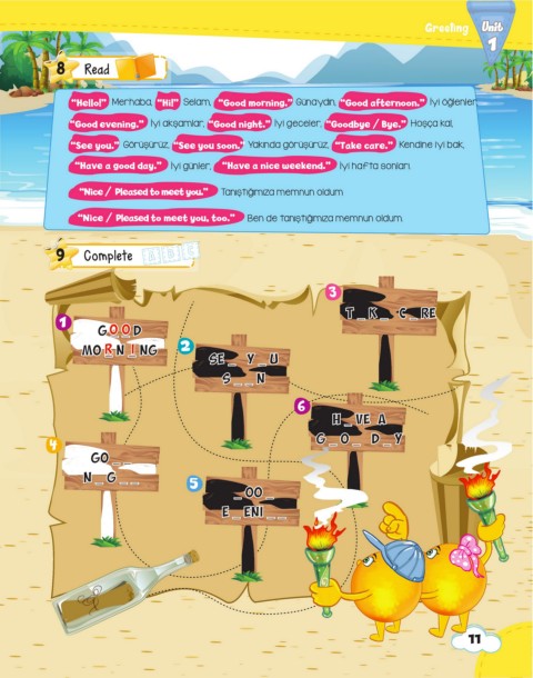 “Good evening.” İyi akşamlar, “Good night.” İyi geceler, “Goodbye / Bye.” Hoşça kal,