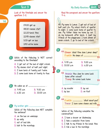 3.10-get on bus seven o’clock. I go to bed at ten o’clock.