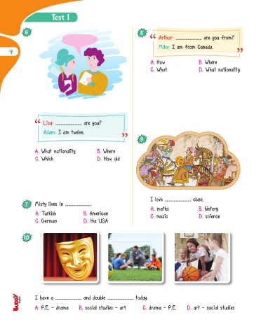 A. P.E. - drama B. social studies - art C. drama - P.E. D. art - social studies
