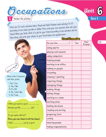 friend. When you finish, think of a job for your friend according to the activities she/he