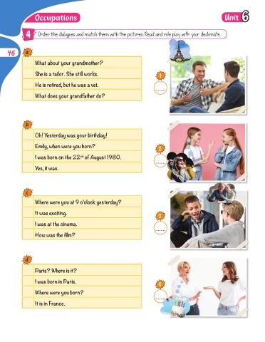 4 Order the dialogues and match them with the pictures. Read and role play with your deskmate.