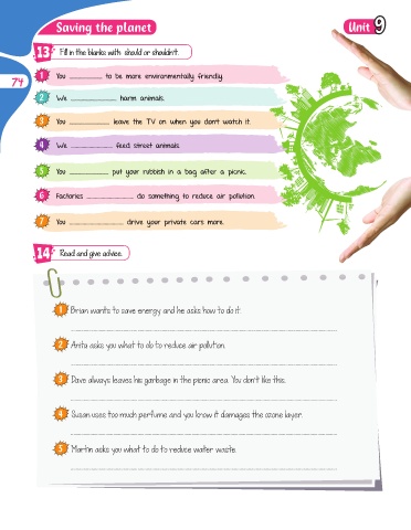 5 You ..................................... put your rubbish in a bag after a picnic.