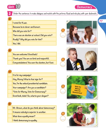 3 Order the sentences to make dialogues and match with the pictures. Read and role play with your deskmate.