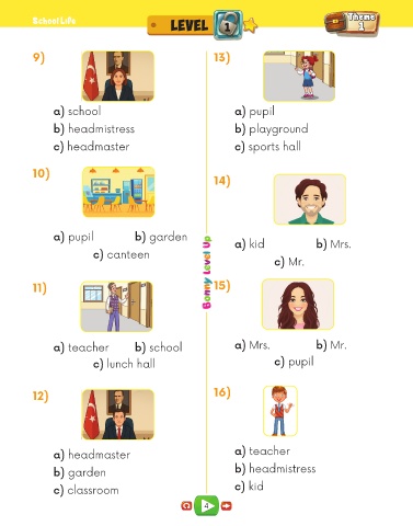 a) pupil b) garden a) kid b) Mrs.
