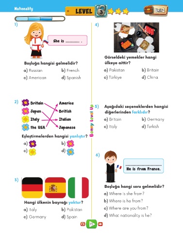Hangi ülkenin bayrağı yoktur? b) Where is he from?