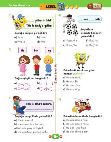 Doğru eşleştirme hangisidir? a) He can swim.