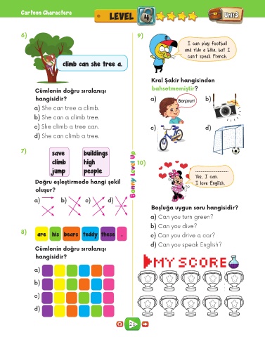 c) She climb a tree can. c) d)