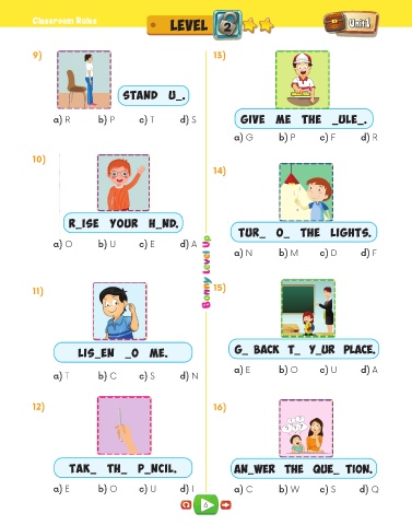 a) E b) O c) U d) I a) C b) W c) S d) Q