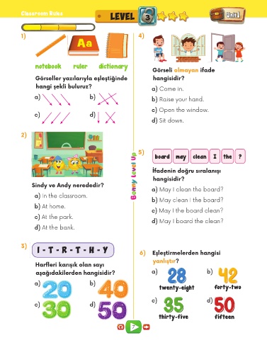 I - T - R - T - H - Y 6) Eşleştirmelerden hangisi